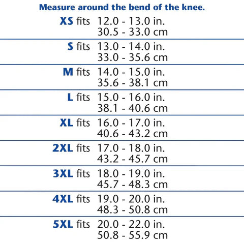 | SIZE | MEASURE AROUND THE BEND OF THE KNEE |